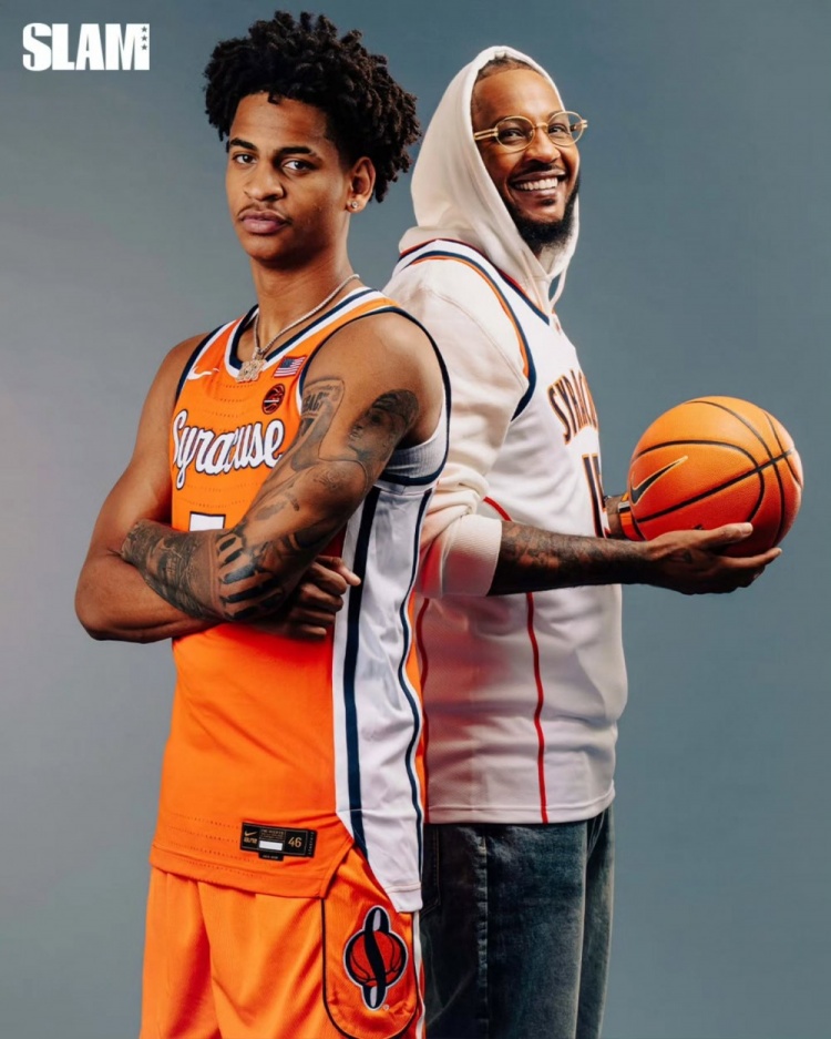 引人注目的是,两人均身穿雪城大学球衣——安东尼身披昔日标志性的15号战袍,儿子基扬则选择了7号球衣亮相。